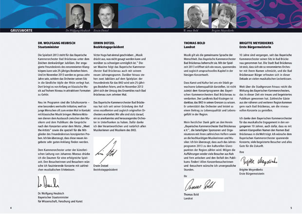 Das Programmheft 2013 informiert die Musikinteressierten des Bayerischen Kammerorchsters Bad Brückenau mal wieder bunt und informativ!